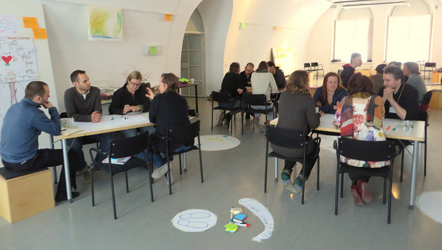 We opened the Open Space. The market place got filled up fast. The idea of having a Pro Action Café was hanging in the air until lunch. It came up naturally, as it fits well with this kind of action oriented phase. Rainer, the co-founder of Pro Action Café and Felix, his colleague and friend from Austria opened the process. New projects connected to the future were introduced. I ended up at Cris´s table talking about an ecovillage project in Romania. Then I switched off to Erica´s table: how to engage Åland´s government in sustainable planning. And for last third round I explored the next steps of Niilo´s life.